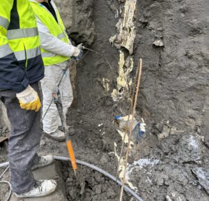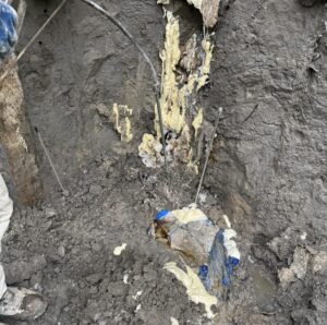 Awaryjne uszczelnienie polościanki przy zastosowaniu żywicy geopolimerowej.